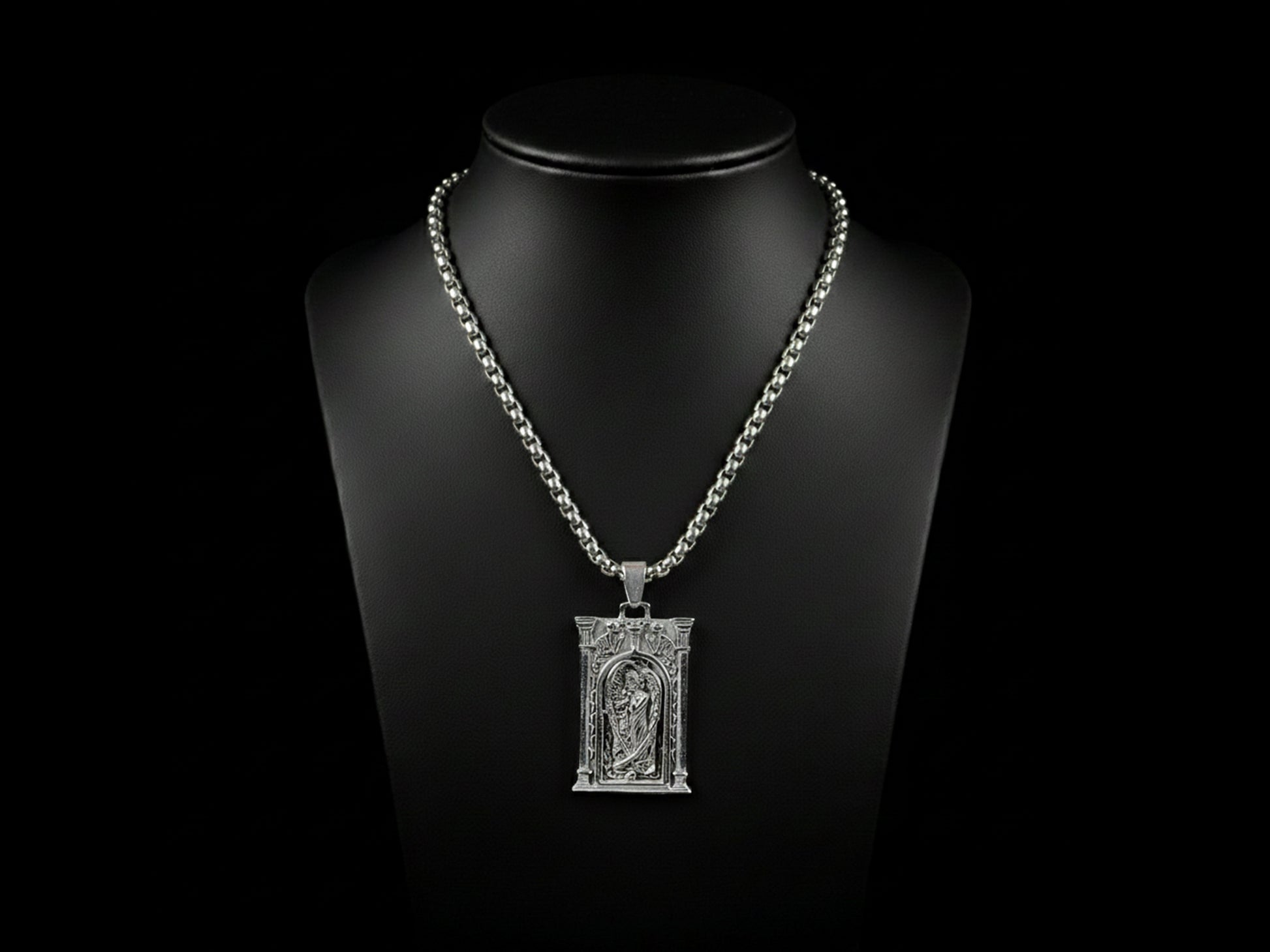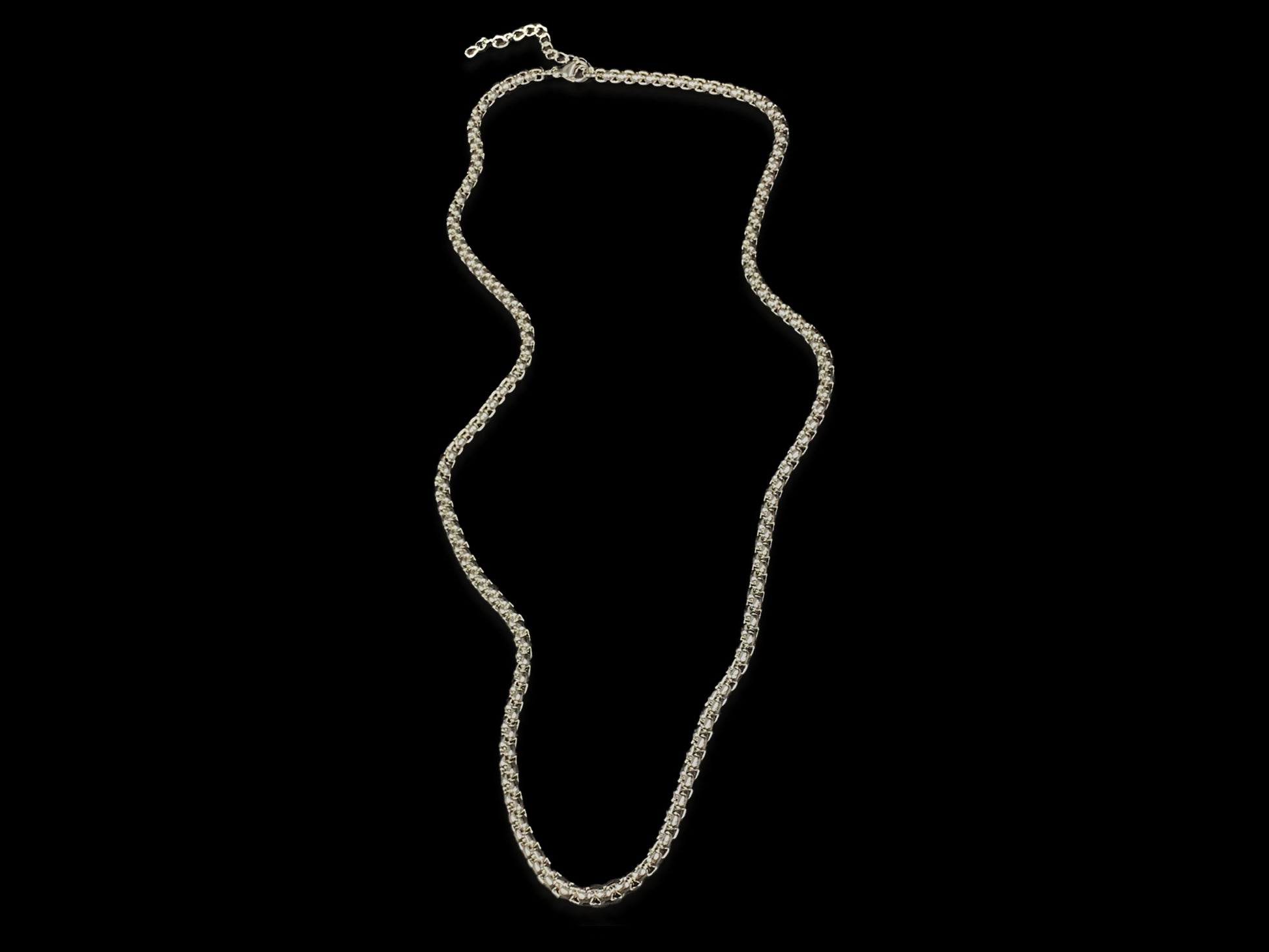 The chain comes with it. Stainless steel, 20 inches with a 2 inch extender. Nothing added. Nothing softened. Just a piece that speaks when you don’t.